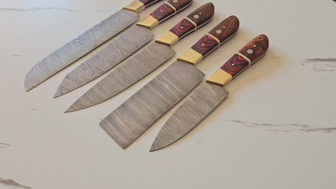 Upgrade your kitchen with the Damascus Chef Culinary Workpiece designed for precision, durability, and elegance. Each workpiece features razor-sharp Damascus edges with stunning natural patterns, full-tang construction, and ergonomic rosewood handles with brass bolsters. Perfect for both professional chefs and passionate home cooks, this set blends traditional Japanese forging with modern performance. Ideal as a Christmas gift for your husband, boyfriend, or best friend, it’s a timeless addition to any kitchen.