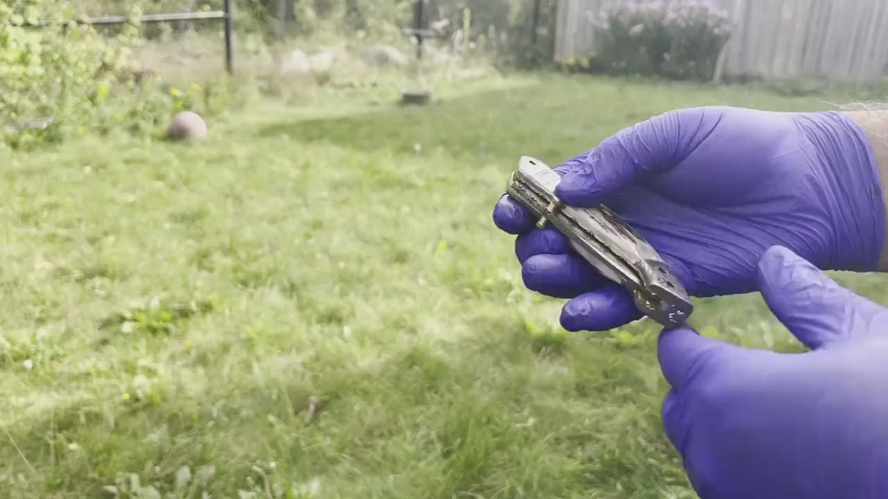 - Includes a leather sheath for protection
